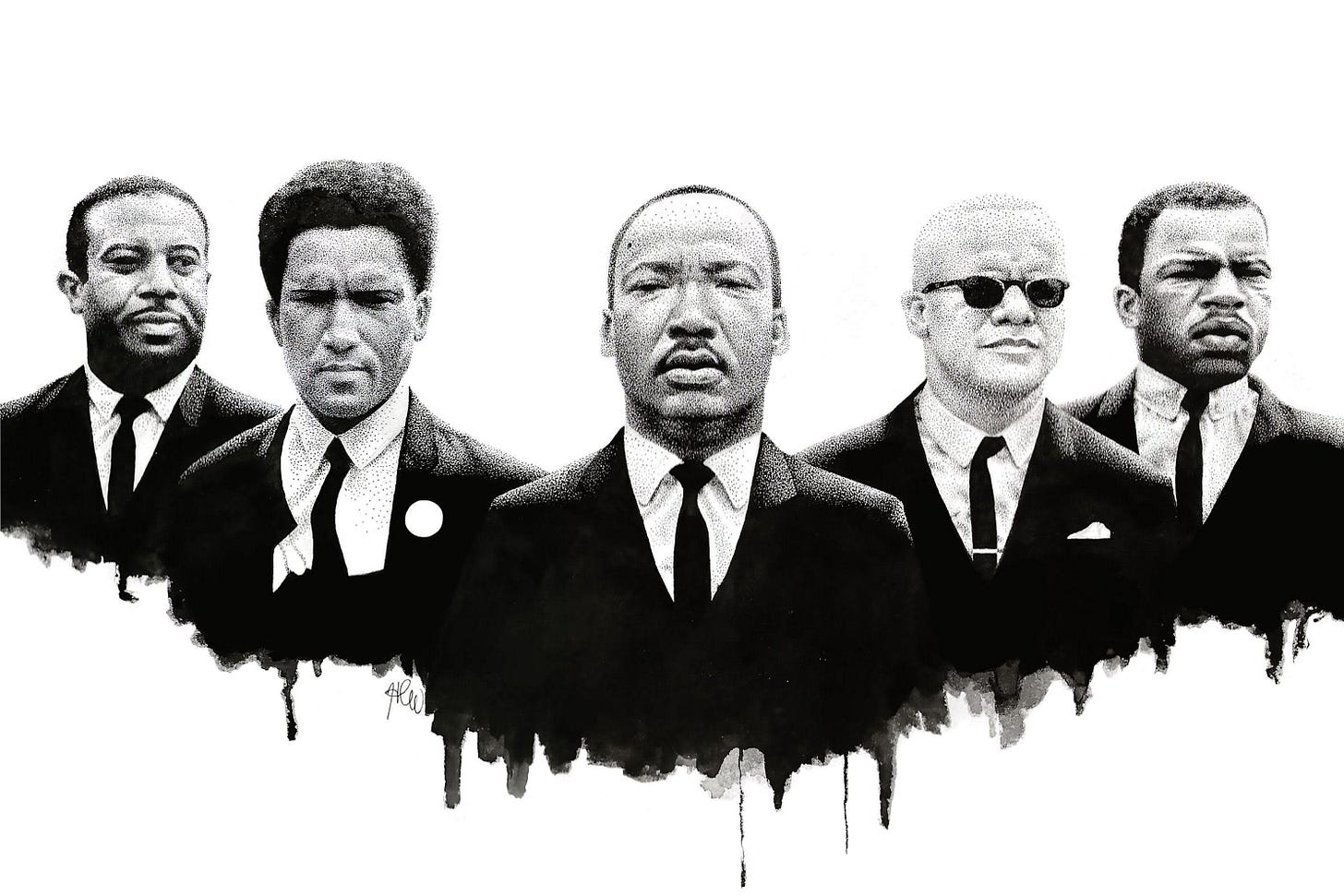 From left to right: Rev. Ralph Abernathy, James Forman, Martin Luther King Jr., Rev. Jesse Douglas, and Representative John Lewis